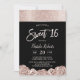 Sweet 16 Modern Rose Gold Flowers Elegant Black Invitation