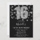 Sweet 16! Invite friends and family to celebrate a 16th birthday with this modern sixteenth invitation. Design features a black background, the numbers sixteen in faux silver glitter, magical string fairy lights, elegant calligraphy script, a modern birthday template that is easy to customise and the option to add a photograph on the reverse.
