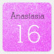 Sweet 16 square sticker with a glam purple glitter sparkles background and black and white writing. You can personalise it with your name and change the number for the age of the birthday. You can even change the text colour and font style using the customise option.