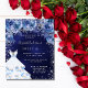 A modern, stylish and glamourous invitation for a Sweet 16, 16th birthday party. A navy background with faux silver glitter sparkles, a dress and blue roses, florals. The blue background colour is uneven. The name is written with a modern hand lettered style script. Personalise and add your party details.