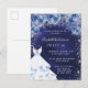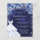 Sweet 16 navy blue dress glitter floral party invitation postcard