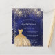 A trendy and glamourous invitation for a Sweet 16, 16th birthday party. A navy blue background with faux gold glitter dust and a dress. The blue colour is uneven. The name is written with a modern hand lettered style script. Personalise and add your party details.