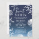 Elegant Navy Blue Beach Coral Reef Starfish Sweet 16 Birthday Invitations.