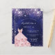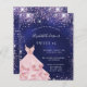 A trendy and glamourous invitation for a Sweet 16, 16th birthday party. A navy blue background with pink faux glitter dust and a dress. The blue colour is uneven. The name is written with a modern hand lettered style script. Personalise and add your party details.
