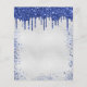 A girly and feminine birthday party invitation. On front: A faux silver background. Decorated with navy blue faux glitter drips, paint dripping look and balloons. Personalise and add a name and party details. The name is written with a hand lettered style script.