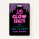 A cute, artistic and stylish neon glow girl birthday party VIP pass. A cool birthday party invitation for teens. Also fun for a retro '80s style party. Designed for you by blackberry Boulevard.