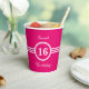 Elegant sweet 16 with white stripes on pink Birthday Cups. Text can be personalised for other ages, Birthdays, company meetings, business, party and more!