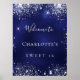 Sweet 16 party blue silver glitter sparkle welcome poster