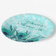 Elegant glittery teal and blue peacock feathers Sweet 16 birthday party paper plates personalised with the name of the guest of honour. Contact me for assistance with your customisations or to request additional matching or coordinating Zazzle products for your party.