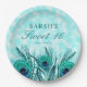 Sweet 16 Peacock Feathers Blue Teal Glitter Paper Plate