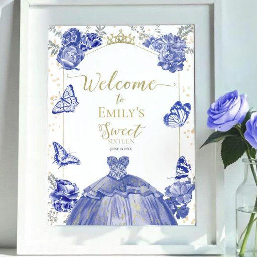 Watercolor Floral Royal Blue Photo Sweet 16Designed by CaMi Designs