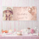 For an elegant Sweet 16, 16th birthday party. A rose gold background. Decorated with rose gold, pink drips, paint dripping look and balloons. Personalise and add a photo and the name. Perfect both as a welcome banner or as party decor. Use a vertical/portrait size photo.