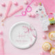 Beautiful Sweet 16 paper plates featuring a delicate pink bow design and soft blush tones.