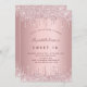 A modern, stylish and glamourous invitation for a girl's Sweet 16, 16th birthday party. A dusty rose, pink background with faux glitter drip, paint dripping look. The name is written with a hand lettered style script.