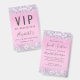 A unique Sweet 16 birthday party invitation that also serves as a badge for guests to wear at the party and keep as a souvenir party favour. This pretty design features sparkly holographic purple, pink and silver faux glitter confetti borders against a pink background, her name in a soft grey trendy script and "VIP All Access Pass" on the top. On the reverse side, personalise the birthday party invitation.