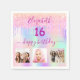 Sweet 16 pink holographic photo name napkin