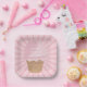 A cute strawberry flavoured ice cream pink paper plate (with sprinkles) and space for a small message and birthday age on the cone. Check out my store for matching paper cups and napkins. Suitable for all occasions with ice cream!