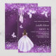 Sweet 16 purple ballerina dress butterflies invitation