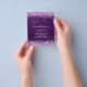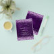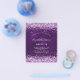 A modern, stylish and glamourous invitation for a Sweet 16, 16th birthday party. A deep purple coloured background with pink faux glitter dust. The purple colour is uneven. The name is written with a modern hand lettered style script. Personalise and add your party details.