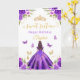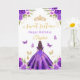 Celebrate her Sweet 16 with this elegant princess birthday card featuring a brunette girl in a sparkling dark purple ball gown, illustrated gracefully from the back. Soft florals, fluttering butterflies, and a regal gold crown create a magical and feminine look perfect for this milestone birthday. The dark purple and gold color palette adds timeless charm, making this a beautiful keepsake card she’ll treasure long after the celebration.