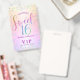 “Happy Sweet 16.” Add some extra fun to your favourite Sweet 16 birthday girl’s celebration party whenever you pass out these special birthday VIP pass keepsake badges! Rainbow glitter script typography, along with festive turquoise, purple pink and gold confetti, overlays a rainbow ombre foil metallic background. Personalise the custom text with your daughter’s name on the front and the party date and venue on the back. Great for the budding fashionista who loves modern glitter and glam and guaranteed to add style to her special party! Matching invites, stickers, plates, napkins and other birthday goodies are also available in this trendy and special collection.