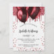 For an elegant Sweet 16, 16th birthday. A stylish white background. Decorated with red faux glitter and balloons. Personalise and add a name, age and party details. The name is written with a hand lettered style script