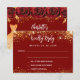 Front: A red background decorated with faux gold glitter, sparkles. Personalise and add your name and dates.