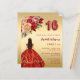 Sweet 16 red gold dress florals roses invitation