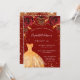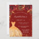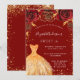 Sweet 16 red gold glitter dress floral invitation