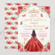 Celebrate her milestone in style with this elegant Sweet 16 invitation featuring an African American girl in a sparkling red ball gown, viewed gracefully from the back. Surrounded by soft florals, fluttering butterflies, and a regal golden crown, the design blends youthful charm with royal sophistication. The color palette includes bright red, shimmering gold, and soft leafy greens—perfect for spring or summer celebrations. Ideal for princess-themed parties, this invitation sets a magical tone for an unforgettable evening.