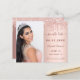 On front: Add a vertical size photo. An elegant rose gold, blush gradient background colour, decorated with drips, paint dripping look. Personalise and add a name and details.
