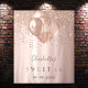 For an elegant Sweet 16, 16th birthday party. A rose gold gradient background. Decorated with rose gold, pink drips, paint dripping look, and balloons. Personalise and add a name, text/age and a date. Can be used as a welcome banner, wall decor for the party or as a photo backdrop.
