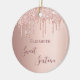 An ornament for a girly and glamourous Sweet 16th birthday. A rose gold background with rose gold drips, paint drip look. The text: Sweet Sixteen is written in dark rose gold with a large modern hand lettered style script. Tempate for a name. Perfect as party decoration, favour, keepsake or as a gift.