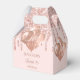Elegant, classic, glamourous and girly for a Sweet 16, 16th birthday party favours. A girly blush, rose gold background colour. On the front and the back: Personalise and add a name and a date. The name is written with a modern hand lettered style script. Decorated with rose gold faux glitter drips, paint dripping look and balloons.