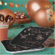 Sweet 16 Rose Gold Butterfly Chic Modern Birthday Paper Party Plates features elegant rose gold butterflies with string lights on a black background with Sweet 16 in elegant calligraphy script with "Happy Birthday" and personalised with your custom name below. Personalise by editing the text in the text boxes. Designed for you by ©Evco Studio www.zazzle.com/store/evcostudio
