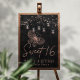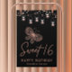 Sweet 16 Rose Gold Butterfly Chic Modern Birthday Poster features elegant a rose gold butterfly with string lights on a black background with Sweet 16 in elegant calligraphy script with "Happy Birthday" and personalised with your custom name below. Personalise by editing the text in the text boxes. Designed for you by ©Evco Studio www.zazzle.com/store/evcostudio
