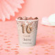 For a glamourous and girly Sweet 16, 16th birthday party. A rose gold gradient background. On the front and the back: Personalise and add a name and a date. Decorated with confetti. Nr 16 is written with a balloon style font.
