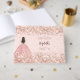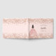 A guestbook for a feminine and glamourous Sweet 16, 16th birthday party. A stylish rose gold background with confetti and a girl wearing a princess dress, ball gown. Personalise and add your name, and age/date. The name is written with a hand lettered style script