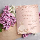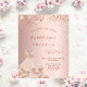 A modern, stylish and glamourous invitation for a Sweet 16, 16th birthday party. A rose gold background with faux sparkles and a rose gold dress. The name is written with a modern dark rose gold coloured hand lettered style script. Personalise and add your party details.