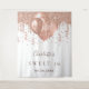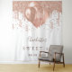 For an elegant Sweet 16, 16th birthday party. A stylish white background. Decorated with rose gold faux glitter drips, paint dripping look,glitter drops and balloons. Personalise and add a name, text/age and a date. Can be used as a welcome banner, wall decor for the party or as a photo backdrop.