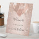 Sweet 16 rose gold glitter blush party welcome pedestal sign
