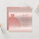 A pretty, modern, and chic sweet 16 birthday invitation featuring faux rose gold dress and glitter splashes against blush pink ombre background.
