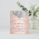 For an elegant Sweet 16, 16th birthday. A rose gold gradient background. Decorated with rose gold, blush and faux silver drips, paint dripping look and balloons. Personalise and add a name, and party details. The name is written with a hand lettered style script