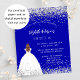 A modern, stylish and glamourous invitation for a Sweet 16, 16th birthday party. A royal blue background with faux glitter dust, a girl wearing a ball gown. The name is written with a modern hand lettered style script. Personalise and add your party details.
