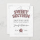 Sweet 16 Save The Date Rose Gold Balloons Glitter Announcement Postcard