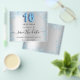 A girly and trendy Save the Date for a Sweet 16, 16th birthday party. A faux silver looking background decorated with blue faux glitter dust. Personalize and add a date and name/age. The text: Save the Date is written with a large trendy hand lettered style script. Number 16 with a balloon style font.