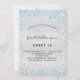 For an elegant Sweet 16, 16th birthday. A faux silver metallic looking background. Decorated with blue faux glitter dust. Personalise and add a name, age and party details. The name is written with a hand lettered style script