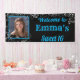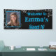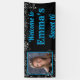 Elegant and feminine banner with sparkling silver glitter, decorative swirl corners and sparkling confetti. Personalise to use for Graduation, Bat Mitzvah, Quinceanera, Anniversary, and Engagements, just change the text. All design elements can be moved and resized to fit most banner sizes. Frame can be sized to fit your photo. Black background, text and frame colour can be changed to your liking.