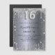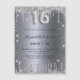 A modern, stylish and glamourous invitation magnet for a girl's Sweet 16, 16th birthday party. A faux silver looking background, decorated with glitter dust. Personalise and add your name nad party details. Number 16 is written with a balloon style font, script.