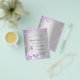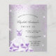 A modern, stylish and glamourous invitation for a Sweet 16, 16th birthday party. A faux silver metallic looking background with purple faux glitter dust and a dress. The name is written with a modern hand lettered style script. Personalise and add your party details.